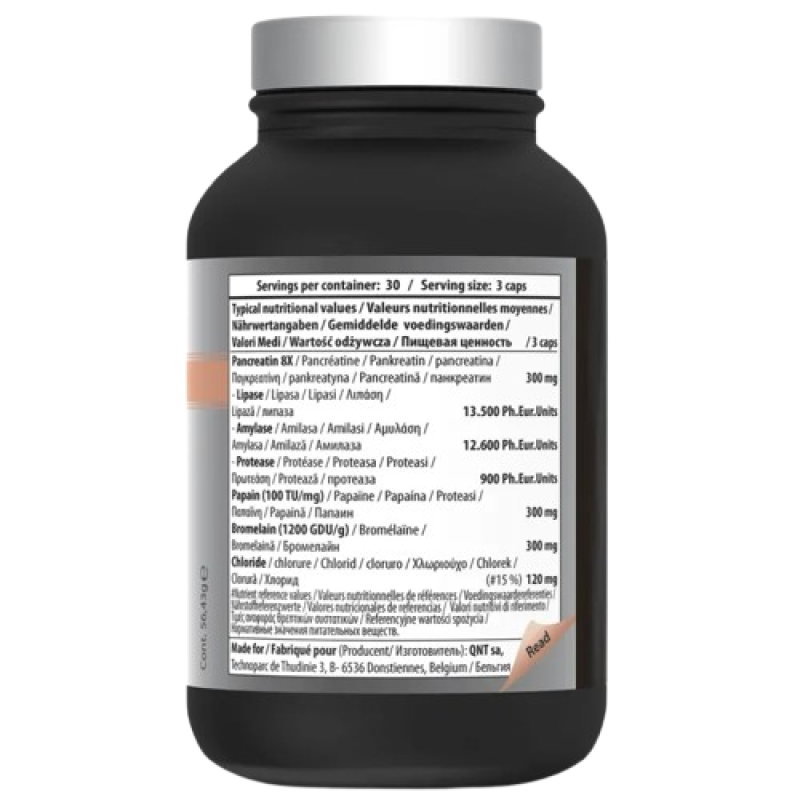 Digestion е комплекс от храносмилателни ензими, създаден да подкрепя естествените процеси на разграждане и усвояване на храната. Този продукт съдържа панкреатин, богат на липаза, амилаза и протеаза, както и растителните ензими папаин и бромелаин, които подпомагат химическото разграждане на мазнини, въглехидрати, протеини и фибри в тялото, което води до по-добро усвояване на хранителните вещества и намаляване на храносмилателния дискомфорт след хранене.