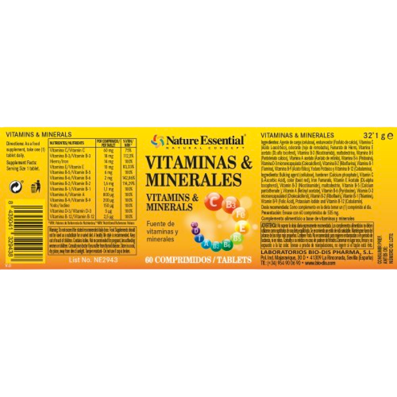Vitamins and Minerals 60 Tabs.